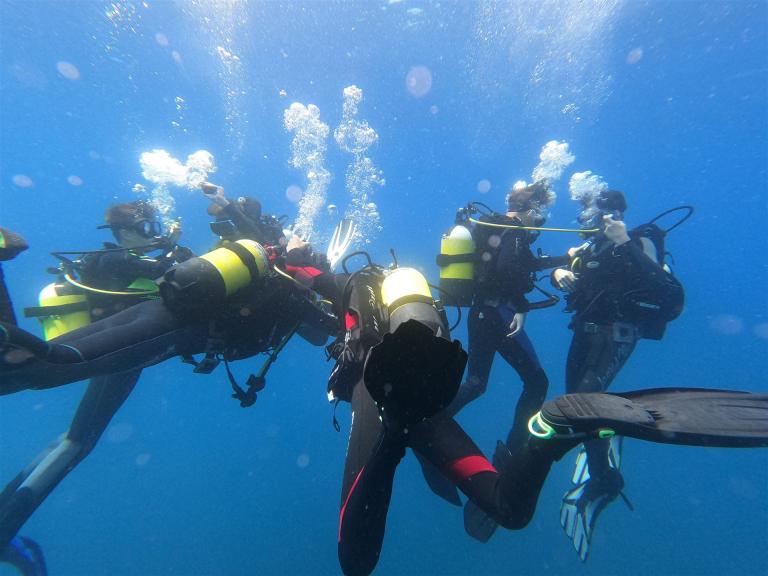 Unser Tag hat um acht Uhr mit einem leckeren Frühstück begonnen . Gegen zehn Uhr sind wir runter zur Tauchbasis gegangen. Beim ersten Tauchgang sind drei Tauchschüler vom Strand aus ins Wasser gegangen und haben Navigationsübungen für ihren Tauchschein absolviert . Nachmittags sind wir mit allen Tauchschüler beim Hafen rein gegangen und sind durch denn Hafenkanal getaucht. Auf zehn Meter Tiefe haben wir Aufstiegsübungen absolviert. Beim ersten Aufstieg ist jeder Tauchschüler alleine bis auf vier Meter hoch getaucht und beim zweiten Aufstieg haben wir uns in 2er Gruppen aufgeteilt und ein Tauchschüler ist am Oktopus vom anderen Tauchschüler ebenfalls bis auf vier Meter aufgetaucht . Danach sind wir gemeinsam Einkaufen gegangen und haben anschließend einen leckere Hühnersuppe zum Abend gegessen . Jetzt haben wir noch Zeit in die Stadt Eis essen , Schwimmen und weiteres zu unternehmen.