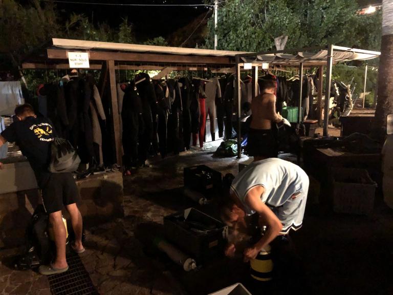Der Tauchtag begann ab zehhn Uhr als der erste der vier Tauchgängen. Die erste Gruppe fuhr mit dem Boot zur Secca 1. Ab 15 Uhr fing dann die zweite Bootsfahrt an. Diese ging nach Fennaio. Als dann alle im Haus waren gab es dann eine gute Stärkung und eine kleine Pause ,da wir später noch einen Nacht Tauchgang vom Strand aus machten. Beim Nacht Tauchgang entdeckten wir auch Aale und einen Oktopus. Die zweite Gruppe fand auch einen feuerfischähnlichen Fisch. Als dann um 01:30 Uhr alle im Haus waren, nahmen sich alle eine wohlverdienten Pause.