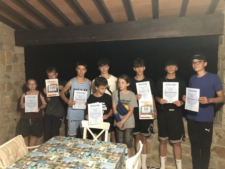 Heute wurde nicht mehr getaucht, alle Zeichen standen auf Aufräumen und Packen. Als wir dann spät abends endlich damit fertig waren, war noch Zeit für die Übergabe der Urkunden an alle Teilnehmer, die auf Giglio die Tauchausbildung abgeschlossen haben. Ganz herzlichen Glückwunsch an meine Tauchschüler Charlotte, Nick, Kieran, Yannick, Noah und Ben zum bestandenen Tauchschein. Es waren tolle zwei Wochen mit Euch und ich habe es Euch als Trainer nicht immer leicht gemacht. Ich hoffe, Ihr macht noch viele schöne Tauchgänge.