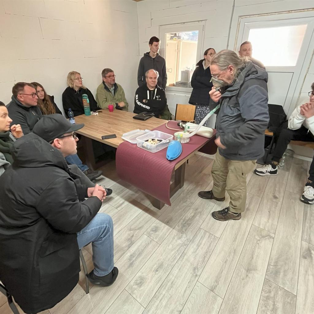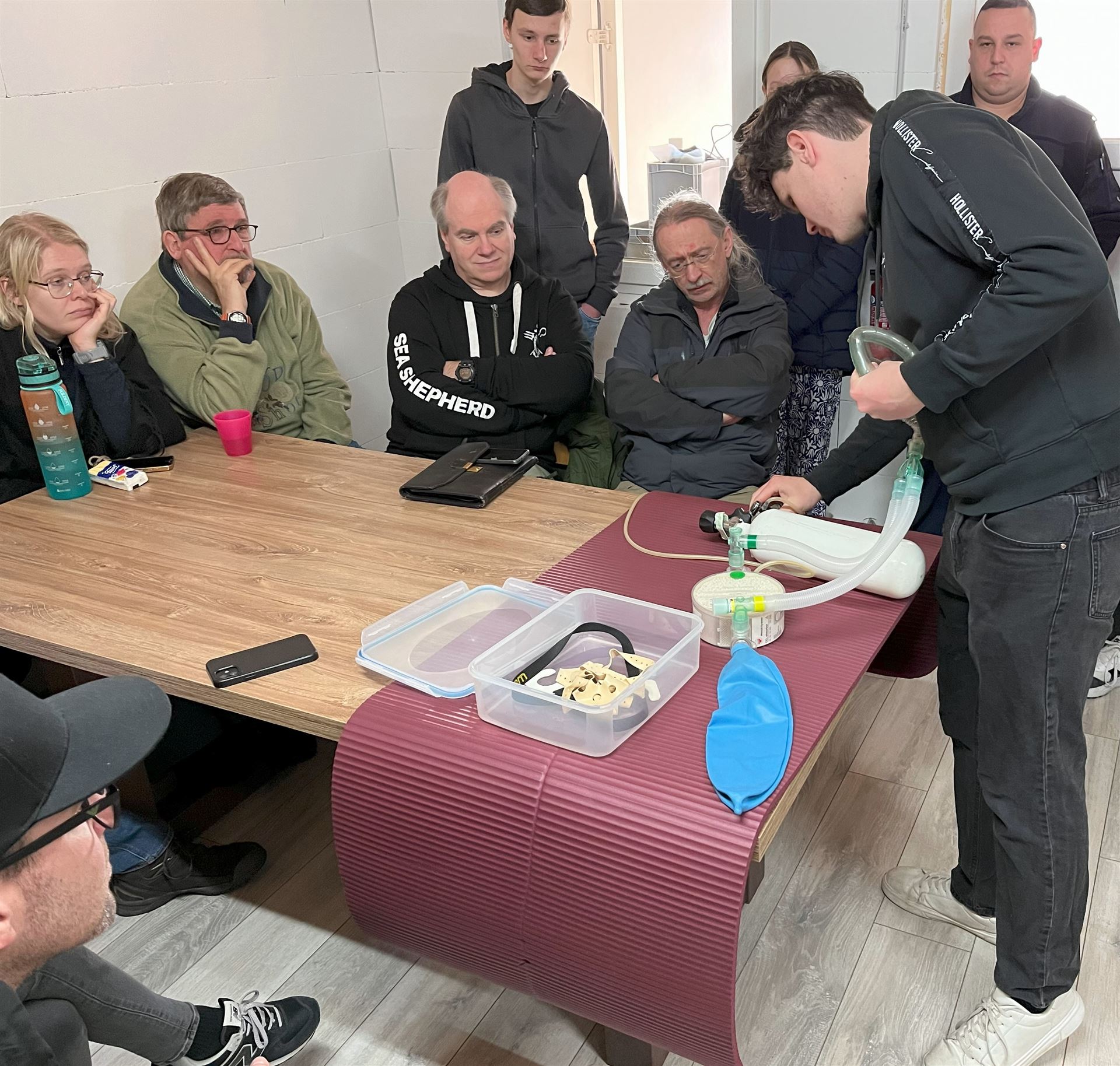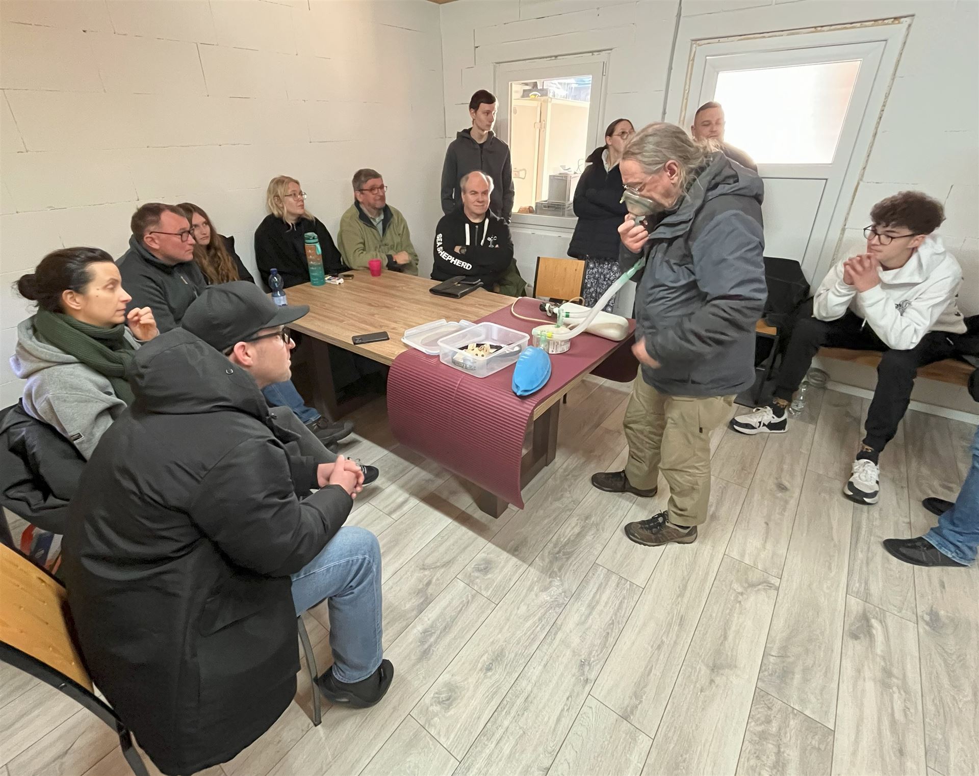Im Vereinsheim ging es dann weiter mit verschiedenen Sauerstoffsystemen, dem Inhalt unserer Übungsbox, dem Notfallkoffer des Vereins und dem Wenoll Kreislaufsystem für Anwendungsbereiche, in denen medizinische Hilfe zeitlich nur sehr verzögert hinzugezogen werden kann. Ein klassischer Fall dafür sind Tauchsafaris, längere Bootstouren oder Tauchen in abseits gelegenen Gebieten.