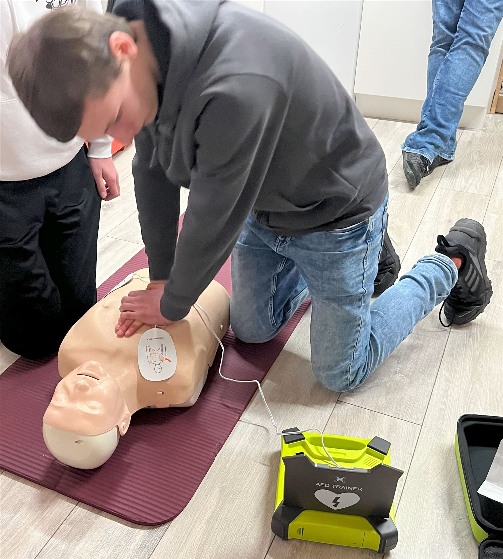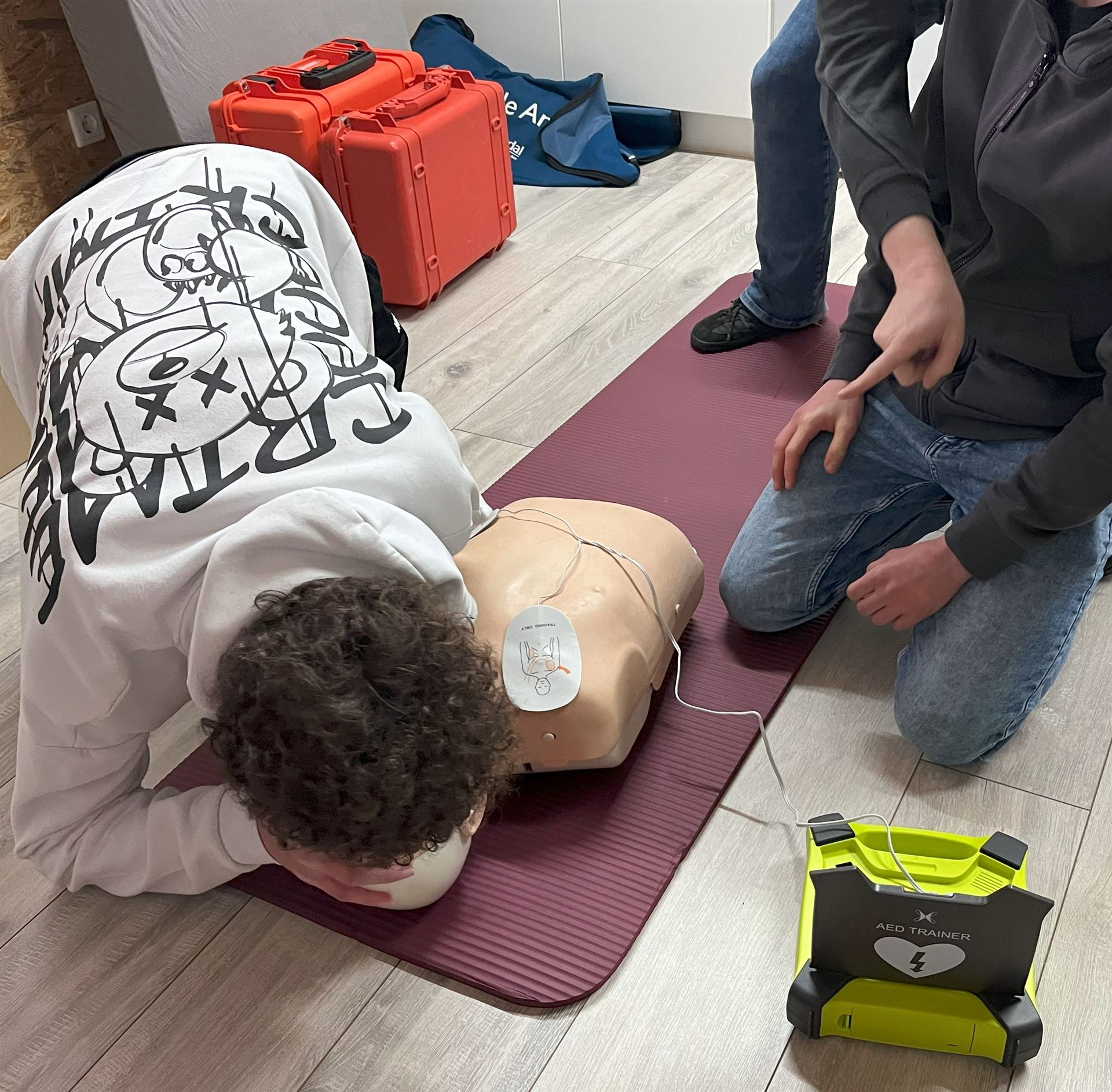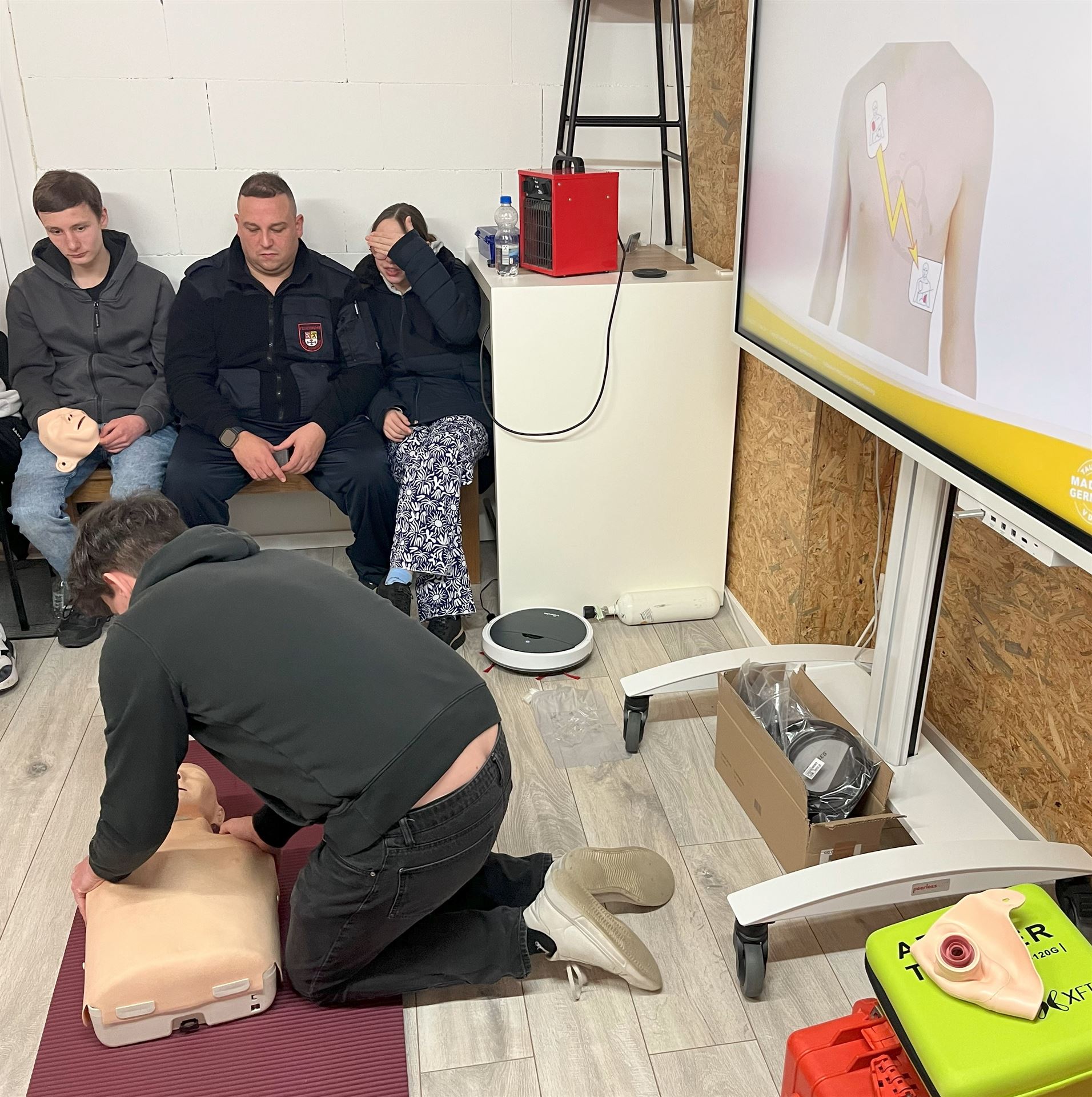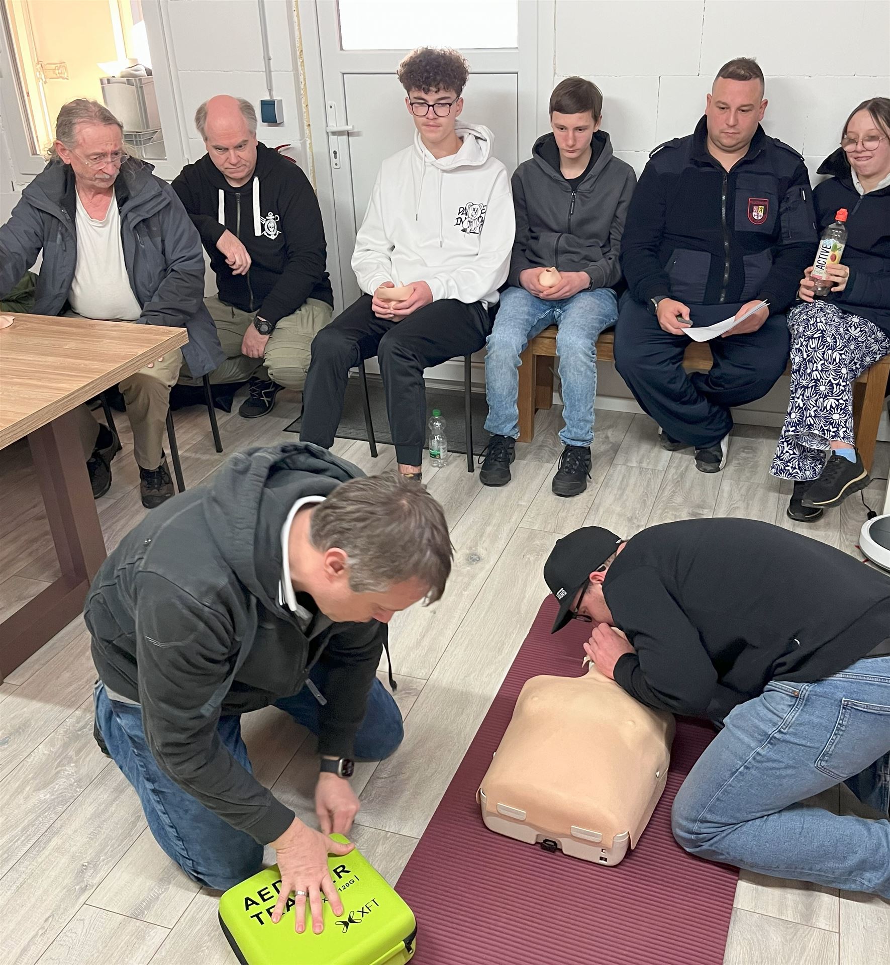 Letzter Programmpunkt war ein Reanimationstraining mit der Herz-Lungen-Wiederbelebung und dem Einsatz des automatischen Defibrillators mit unterschiedlichen Übungsszenarien.