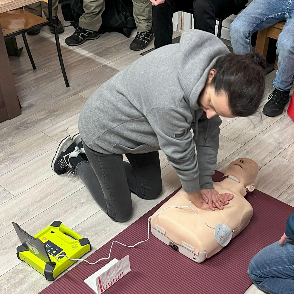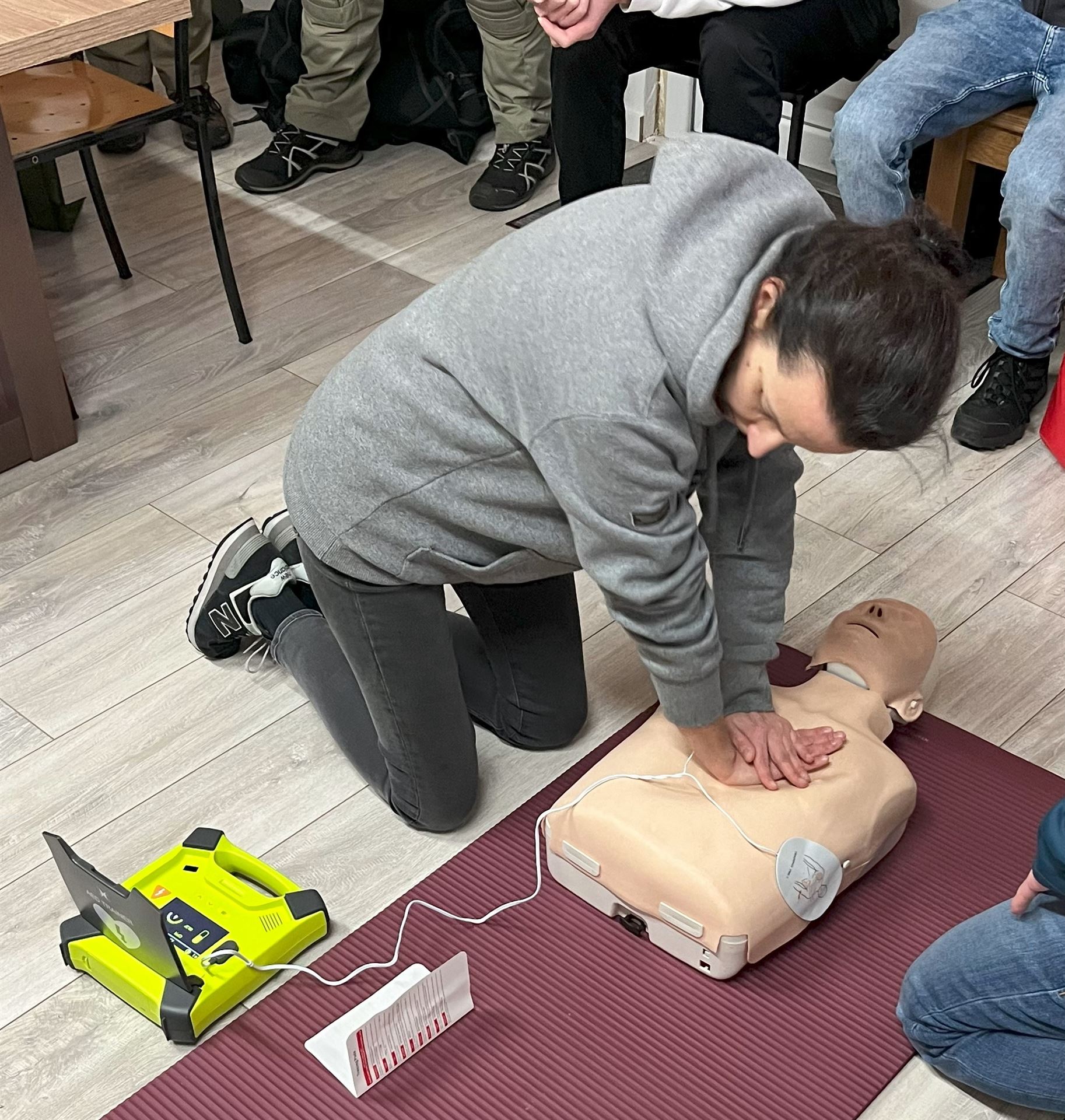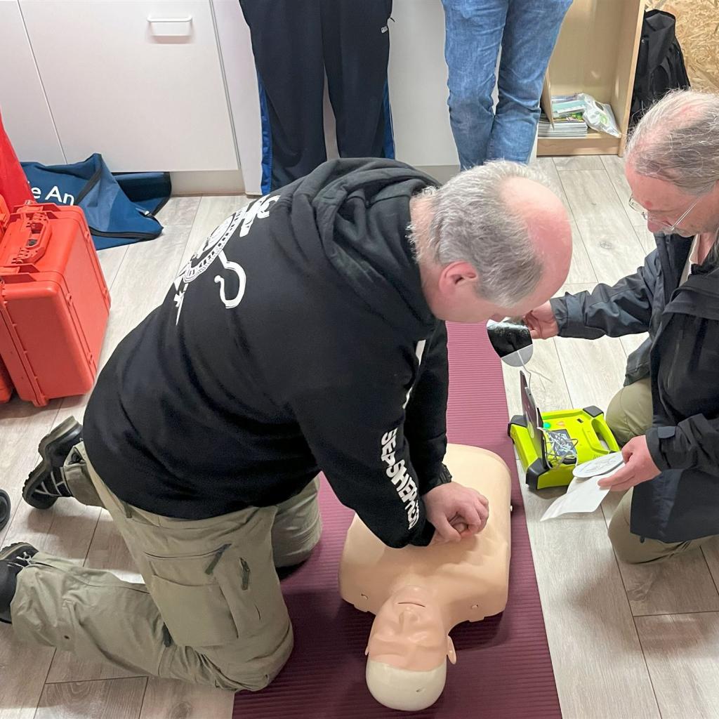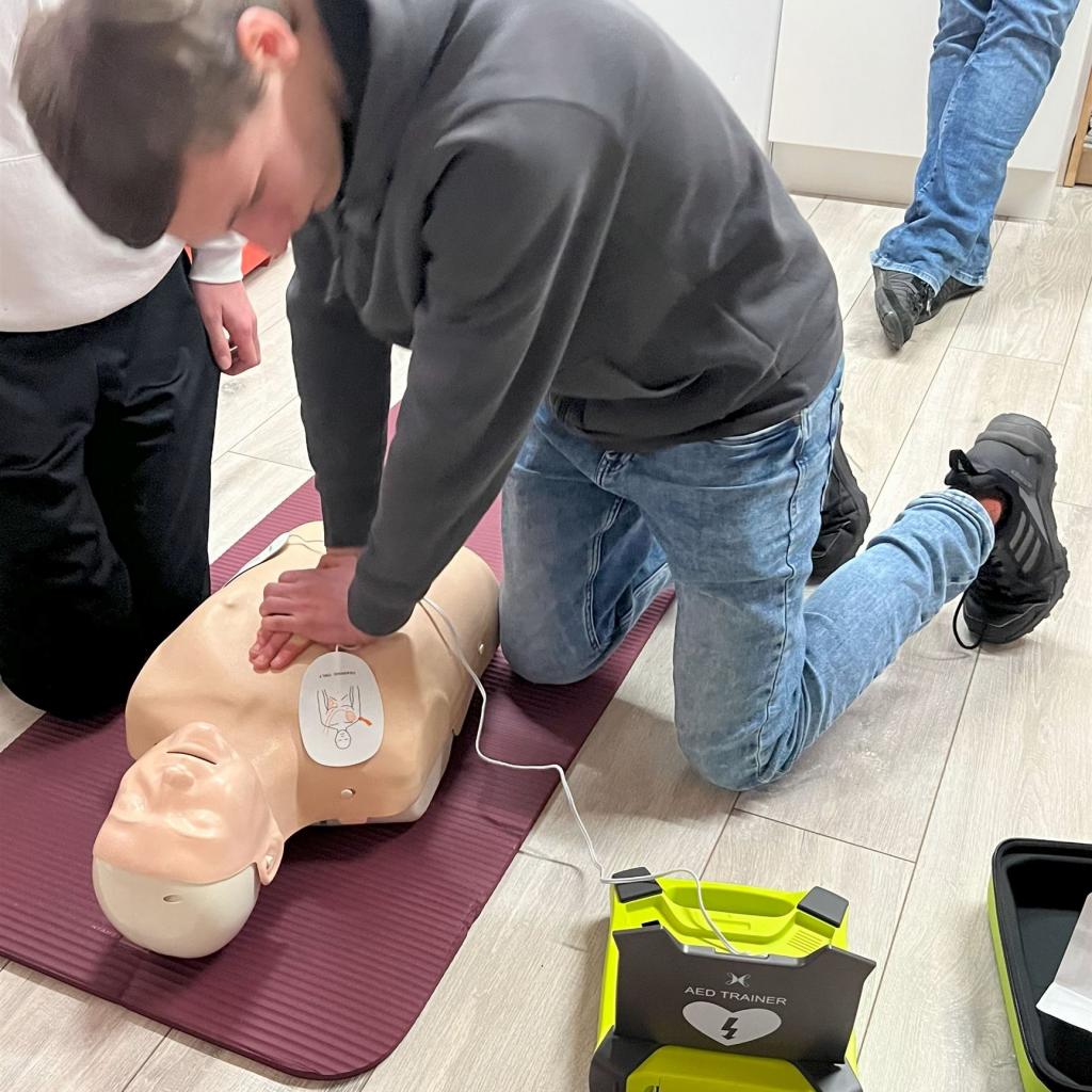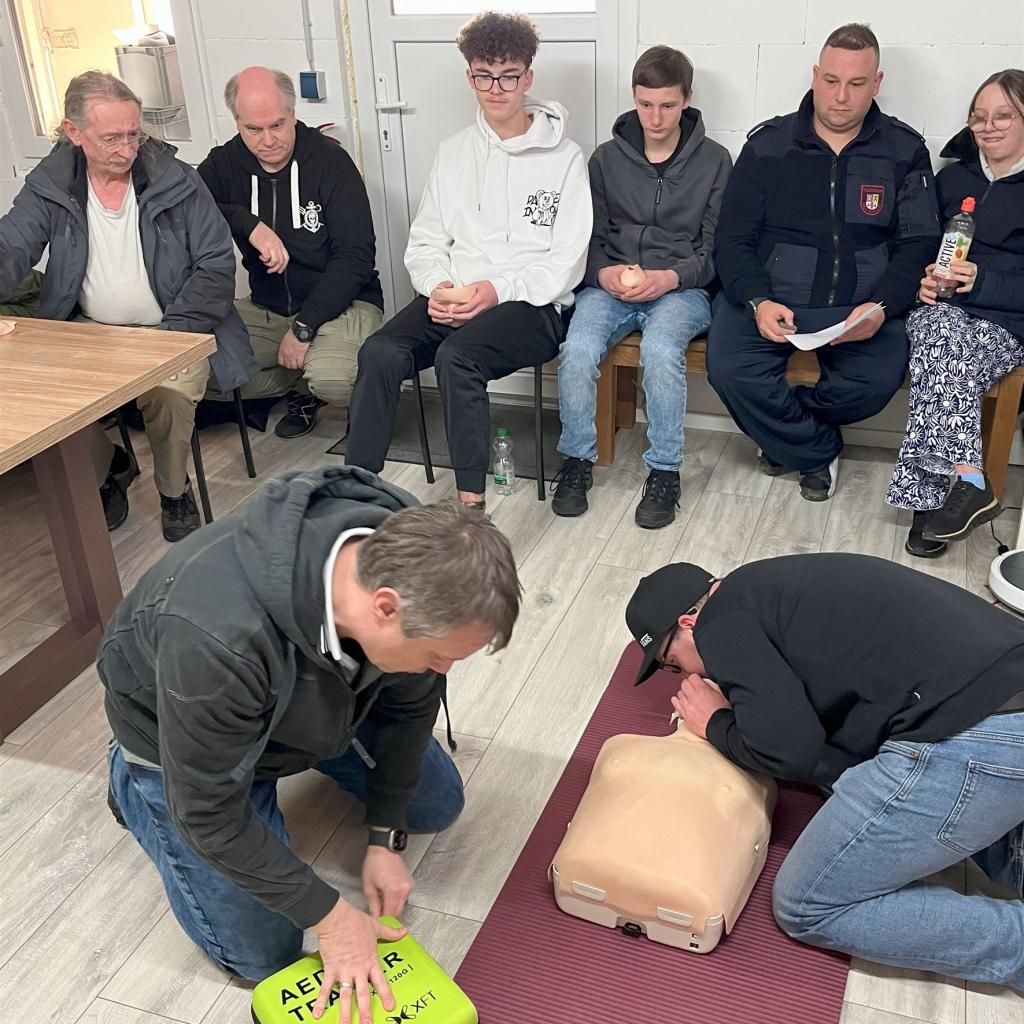 Letzter Programmpunkt war ein Reanimationstraining mit der Herz-Lungen-Wiederbelebung und dem Einsatz des automatischen Defibrillators mit unterschiedlichen Übungsszenarien.