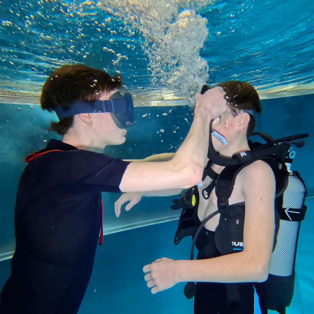 Gestartet sind wir frühmorgens im Schwimmbad, dass wir für unseren Kurs alleine hatten. Da wir ein Sportverein sind, hat sich jeder nochmal im Bergen eines handlungsunfähigen Tauchers aus 4,3 Meter Tiefe vom Beckengrund mit angehaltener Luft geübt. Sollte man als Sporttaucher können. Danach sind wir im Flachwasser nochmal die richtigen Griffe zum schnellen Befreien eines Tauchers von seiner Ausrüstung durchgegangen.