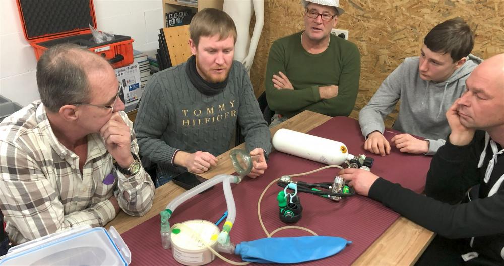 Sechs unserer Taucher haben auch in diesem Winter am Fortbildungskurs in Erster Hilfe beim Tauchen, Sauerstoffgabe , HLW und Tauchmedizin mitgemacht. Schwerpunkt des 8-stündigen Seminars lag auf der Vermittlung und praktischen Anwendung der BASICS, also der Sofortmaßnahmen, die beim Stichwort "Verdacht auf Tauchunfall" vom Ersthelfer noch am Tauchplatz zu veranlassen sind.