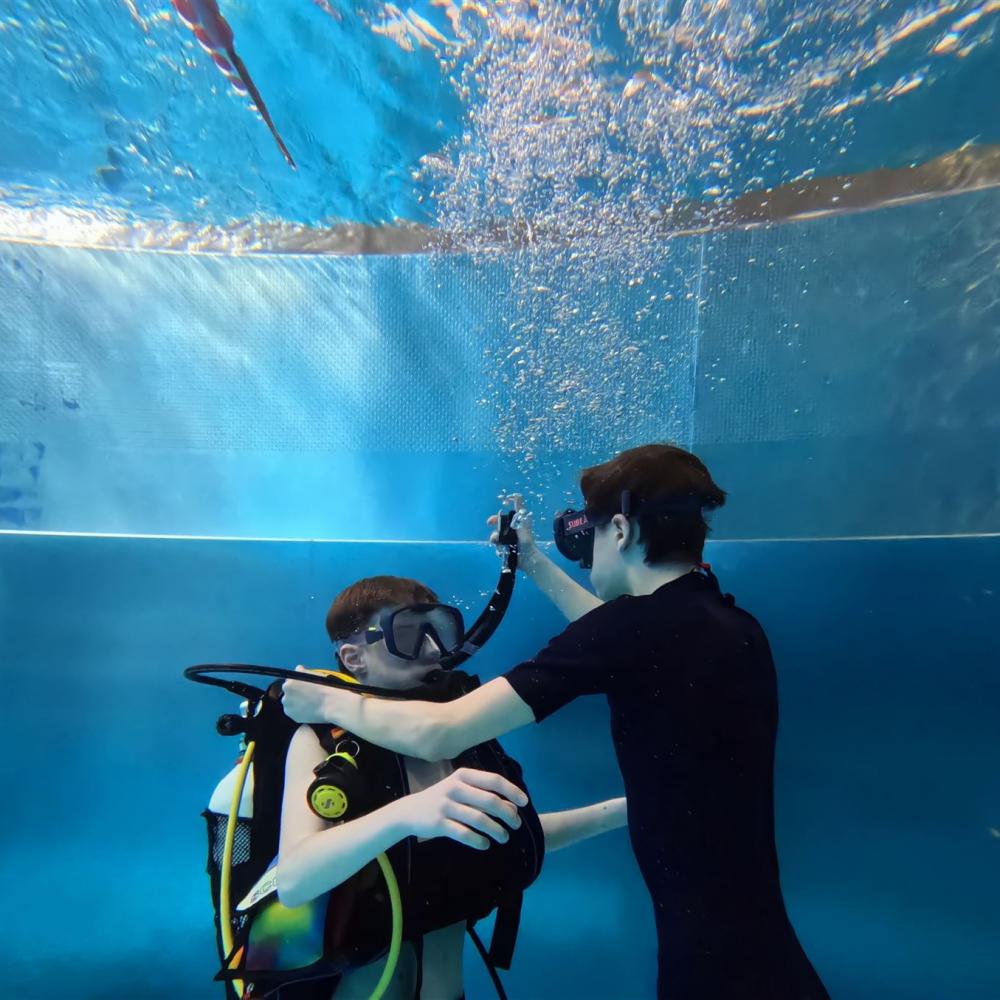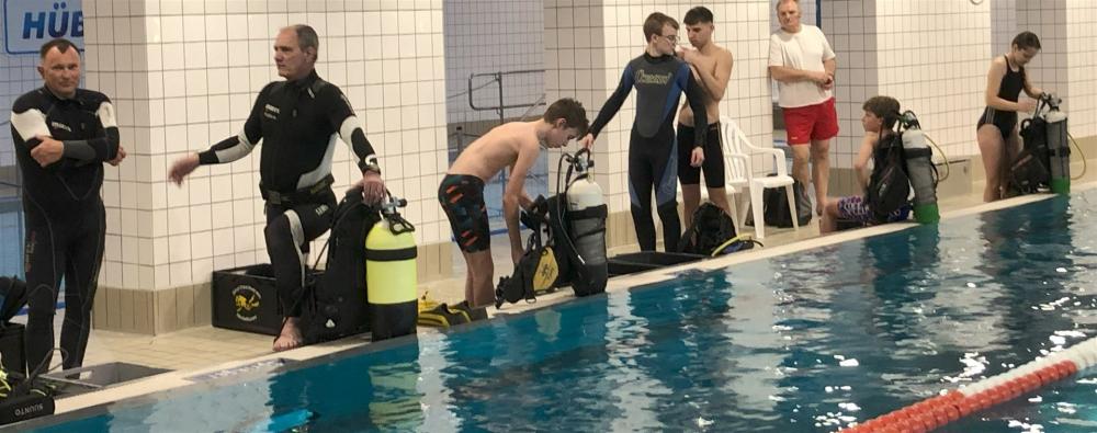 Eine weitere Premiere gab es am Sonntagmorgen: das Erste Jugendtraining zu den neuen Zeiten im HÜ-Bad. Thema heute für die Jugendlichen mit Tauchschein: Notaufstieg, wann muss ich einen machen und wie kann ich ihn beim Tauchpartner eventuell verhindern.