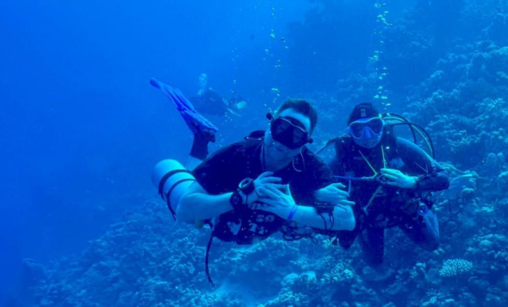 Der erste Tauchtag führte uns zweimal hinunter zum Wrack der S.M.S. Cöln in 35 Meter Tiefe. Beeindruckend waren die noch gut erhaltenen Geschütze.