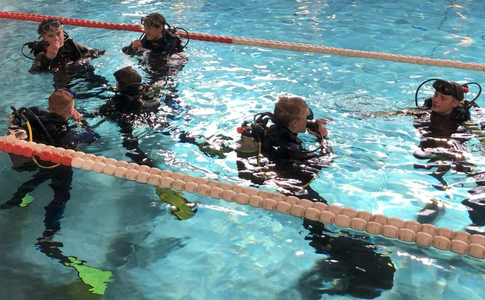 Und wieder sind wir mit einem neuen Anfängerkurs gestartet in dem in den nächsten Wochen sechs neue Taucher ihr Handwerk lernen. Neu im Einsatz sind 3 erfahrene Taucher, die in Ausbildung zur Trainer C Lizenz sind und die in diesem Kurs ihre ersten eigenen Unterrichte gehalten haben.