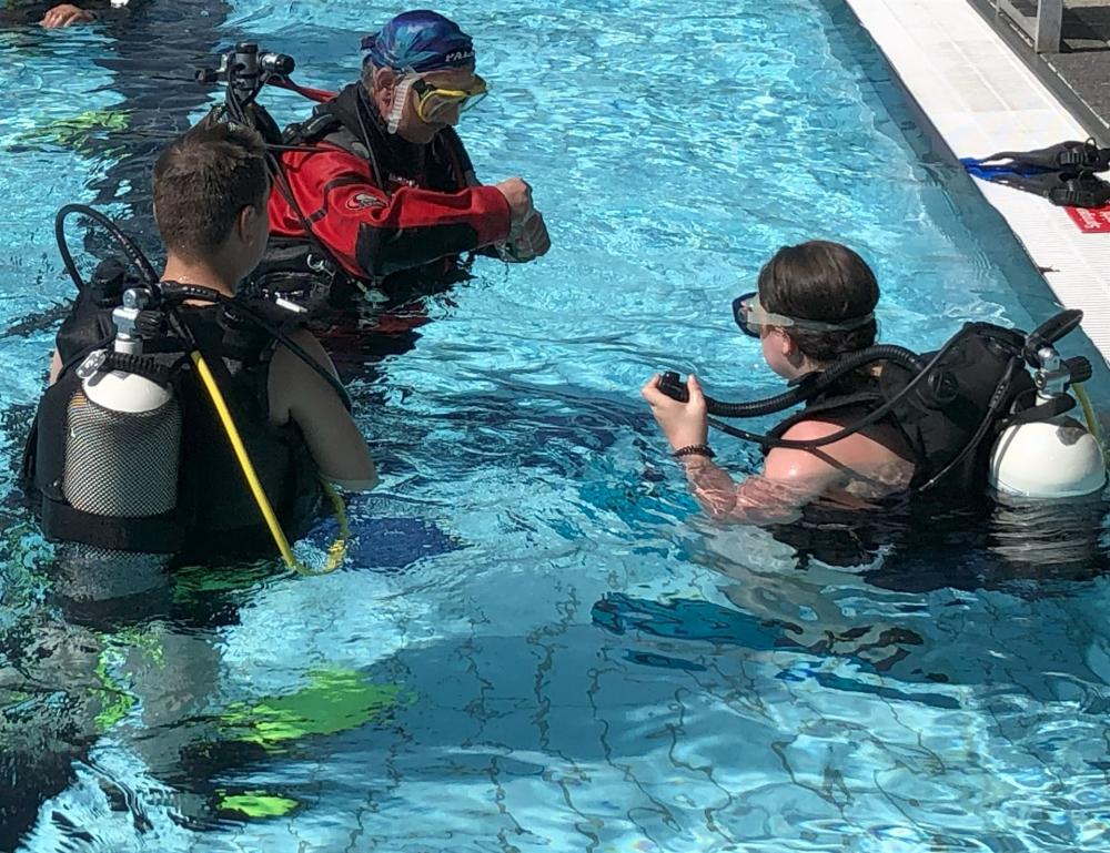 Auch dieses Jahr sind wir wieder schwer bepackt zum Tauchertag im Bürgerbad Kirchhoven gestartet. Das Interesse bei tollem Wetter war sehr groß. Mehr als 20 Schnuppertauchgänge und einen Tauchkurs der Gesamtschule Oberbruch konnten wir begleiten..