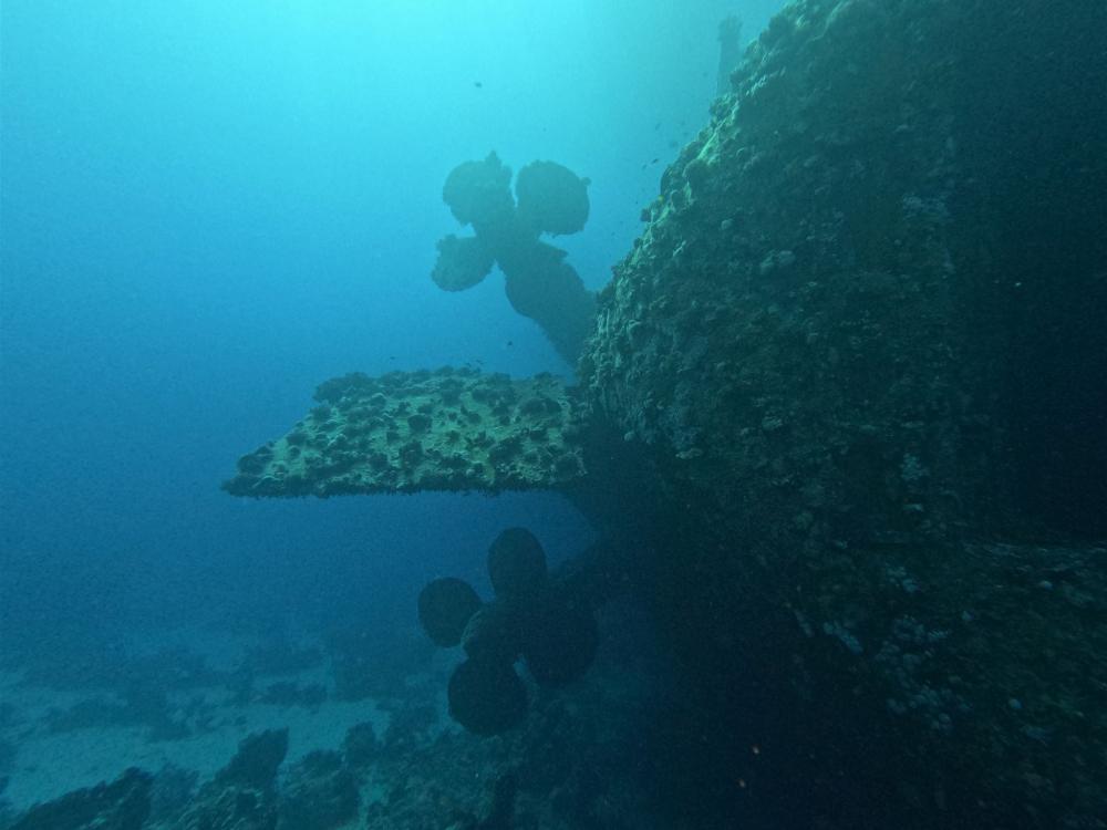 Das beeindruckendste Wrack unserer Tour stand am letzten Tauchtag auf dem Programm: das Linienschiff S.M.S. Kronprinz Wilhelm liegt kopfüber in 38 Meter Tiefe und ist gut erhalten.